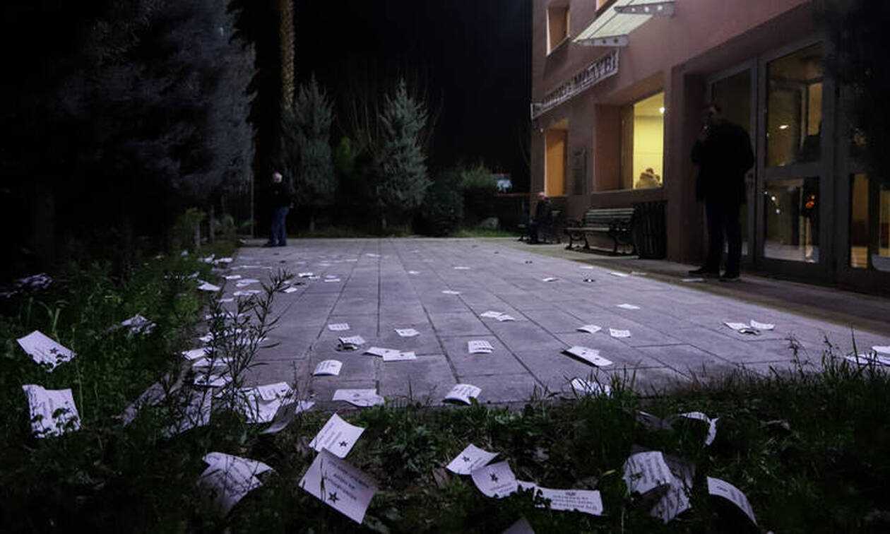 Τα μέλη του «Ρουβίκωνα» σήκωσαν πανό, φώναξαν συνθήματα και πέταξαν τρικάκια, πριν αποχωρήσουν χωρίς περαιτέρω «παρατράγουδα».