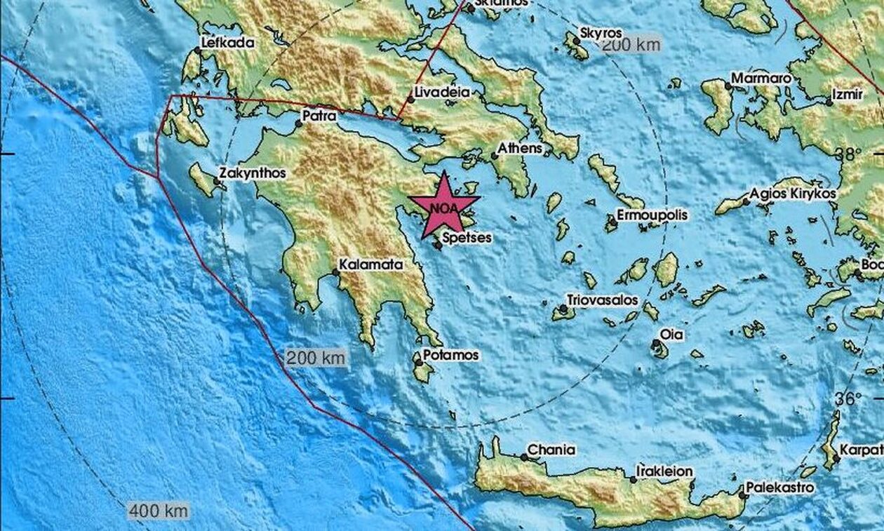 Το ακριβές επίκεντρο τη δόνησης εντοπίζεται στα 20 χλμ. βόρεια – βορειοδυτικά της Ερμιόνης.