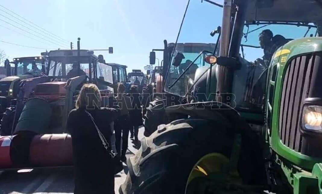 Ο αγρότες θέλησαν να πάνε με τα τρακτέρ στον κόμβο του αεροδρομίου όμως κλούβα των ΜΑΤ τους έφραξε την πορεία