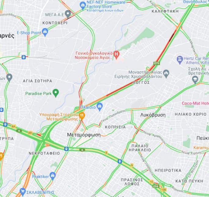 Κατά συνέπεια αυξημένη είναι η κίνηση αυτή την ώρα στο ρεύμα καθόδου προς Πειραιά, από το ύψος της γέφυρας Καλυφτάκη μέχρι το ύψος της Μεταμόρφωσης.