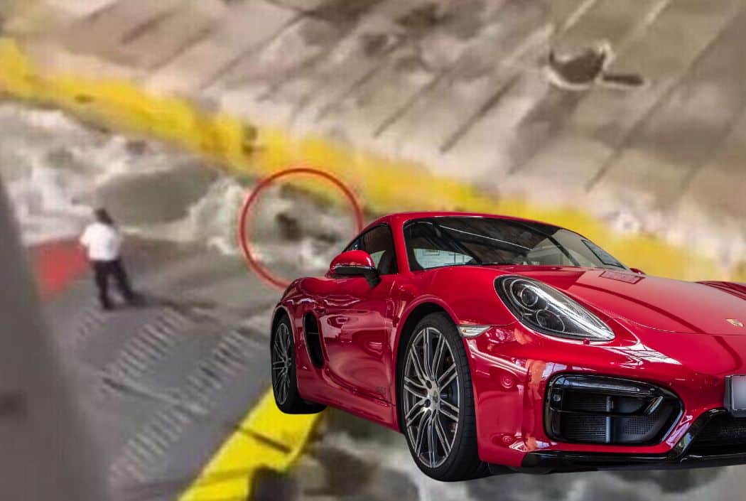 Αρχικά δεν ξεχώριζε ούτε το χρώμα του αυτοκινήτου, αλλά τελικά φάνηκε πως ήταν μία κόκκινη Porsche .