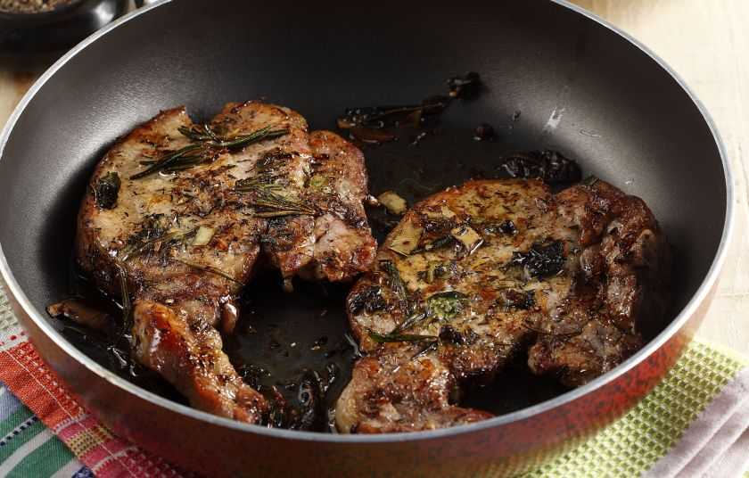 Μόλις τις βάλουμε στο τηγάνι, μετριάζουμε τη θερμοκρασία. Όταν περάσουν περίπου 7 – 8 λεπτά, δηλαδή στα μισά του χρόνου ψησίματος, τις γυρίζουμε για να ψηθούν και από την άλλη. Γυρίζουμε τις μπριζόλες μόνο μία φορά, για να προλάβουν να ροδίσουν καλά. Αν χρειαστούν περισσότερο ψήσιμο, συνεχίζουμε με συχνότερα γυρίσματα. Στο τέλος του καθορισμένου χρόνου ελέγχουμε με ένα μαχαίρι στο εσωτερικό (στο κέντρο της μπριζόλας και κοντά στο κόκαλο) και, αν χρειάζεται, την ψήνουμε λίγα λεπτά ακόμη. Σημάδι πως δεν έχουν ψηθεί σωστά είναι κάποια ροζ σημεία στο εσωτερικό τους.