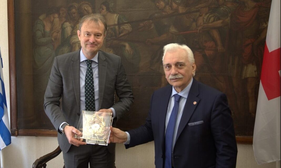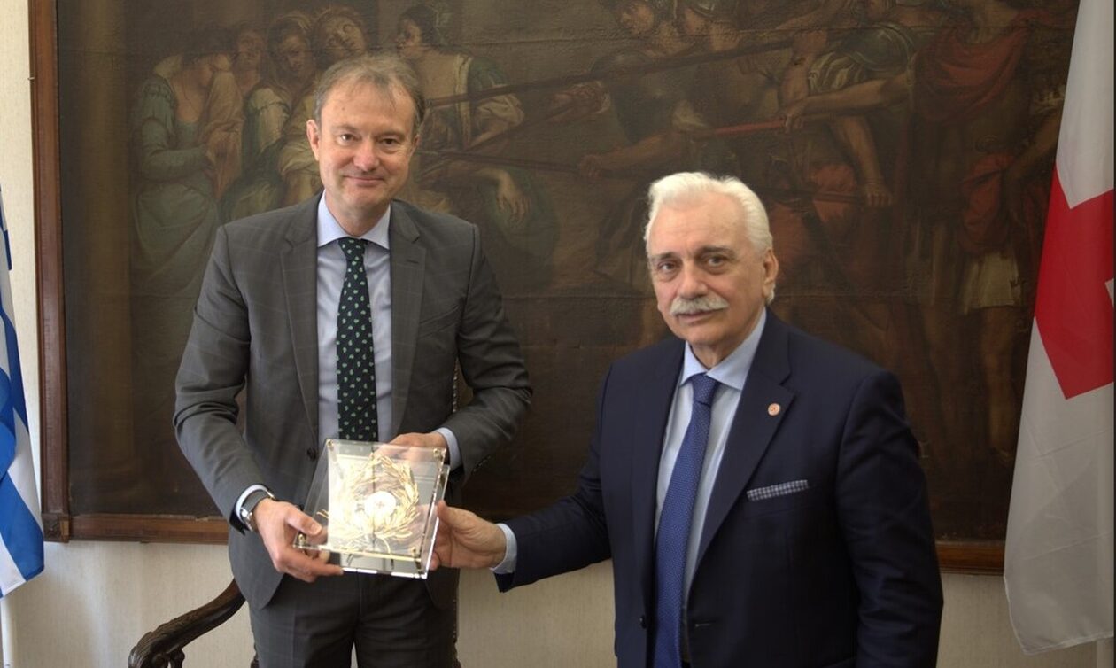 Ο Πρόεδρος του Ελληνικού Ερυθρού Σταυρού, Dr. Αντώνιος Αυγερινός, ενημέρωσε αναλυτικά τον Πρέσβη για τις δράσεις του Οργανισμού προς όφελος των ευάλωτων κοινωνικών ομάδων, τις καθημερινές ανθρωπιστικές προκλήσεις που αντιμετωπίζει ο Οργανισμός, αναλύοντας παράλληλα τους μηχανισμούς και τις διαδικασίες που ακολουθεί ο Ε.Ε.Σ. προκειμένου να ανταποκρίνεται πάντοτε άμεσα και αποτελεσματικά σε οποιαδήποτε έκτακτη κατάσταση προκύψει, εντός και εκτός συνόρων.