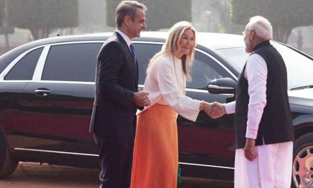 Τις εντυπώσεις στην επίσκεψη του πρωθυπουργού Κυριάκου Μητσοτάκη στην Ινδία, κέρδισε η σύζυγός του Μαρέβα και η ενδυματολογική της επιλογή.