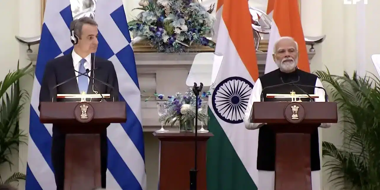 Κοινές δηλώσεις του Κυριάκου Μητσοτάκη και του Ινδού πρωθυπουργού Ναρέντρα Μόντι ακολούθησαν τη συνεδρίαση των διευρυμένων αντιπροσωπειών, ενώ ήδη ο πρωθυπουργός κατά την τελετή υποδοχής, μίλησε για τη στρατηγική συνεργασία Ελλάδας και Ινδίας.