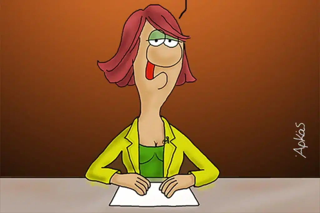 Στο σημερινό του σκίτσο, η παρουσιάστρια αναφέρεται στην… απόφαση του υπουργείου Παιδείας για κατάργηση του θαυμαστικού, καθώς άπαντες… διαπίστωσαν ότι δεν τους εκπλήσσει τίποτα στην Ελλάδα…«Σήμερα το υπουργείο Παιδείας ανακοίνωσε την κατάργηση του θαυμαστικού», μετά από την διαπίστωση της, ότι τίποτα δεν μας εκπλήσσει πια.