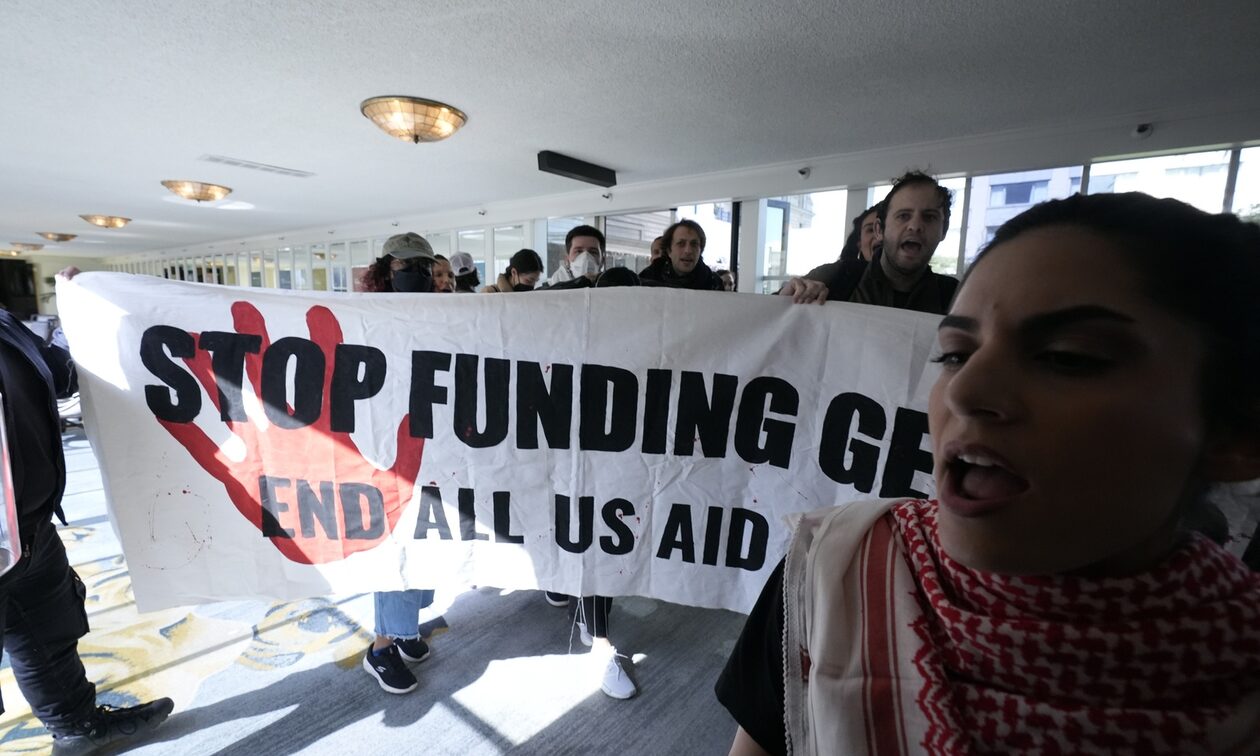 Περίπου 30 διαδηλωτές υπέρ της Γάζας εισέβαλαν στο ξενοδοχείο και φώναζαν συνθήματα «Κατάπαυση του πυρός τώρα».