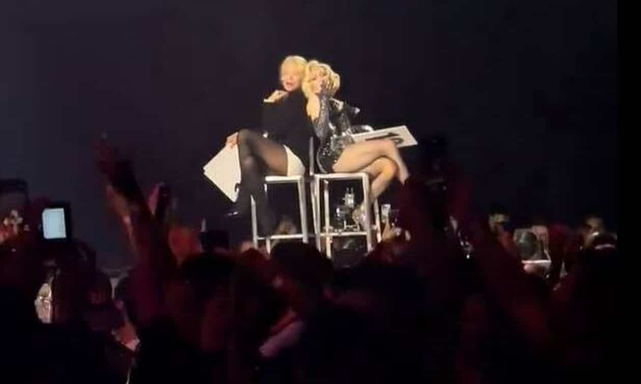 Οι δύο εντυπωσιακές γυναίκες μοιράστηκαν την ίδια σκηνή, αντάλλαξαν φιλιά και αγκαλιάστηκαν με το κοινό να αποτυπώνει την στιγμή αυτή και να ουρλιάζει από τη χαρά του.