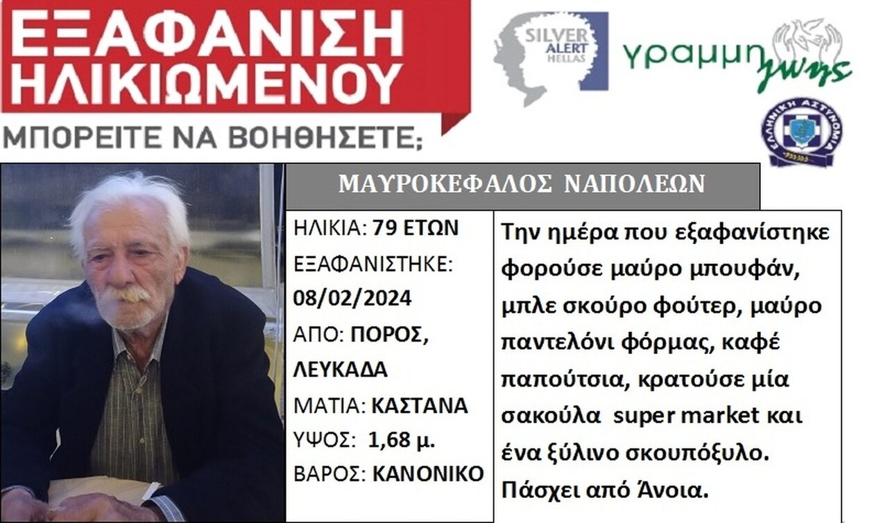 Δεν είχε αίσιο τέλος η αναζήτηση του Ναπολέοντα Μαυροκέφαλου, όπου είχε χαθεί από το το πρωί της 08/02/24.