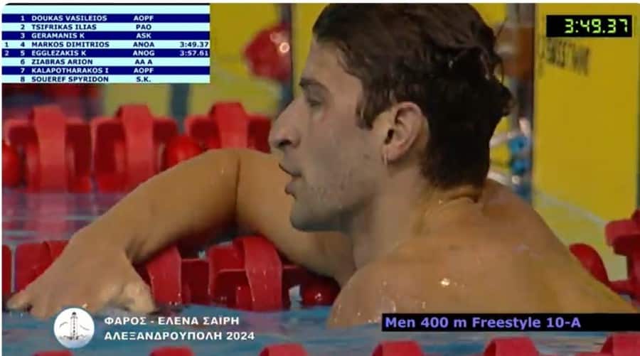 Ο Δημήτρης Μάρκος, η Δέσποινα Πυρίλη και ο Χρήστος Δημανόπουλος ήταν οι πρωταγωνιστές, με νέα πανελλήνια ρεκόρ, στην τρίτη και τελευταία ημέρα του διεθνή αγώνα με την επωνυμία  «ΦΑΡΟΣ – ΕΛΕΝΑ ΣΑΪΡΗ 2024», που φιλοξενήθηκε στο Δημοτικό κολυμβητήριο Αλεξανδρούπολης. Ο Μάρκος (ΑΝΟ Αργυρούπολης) κολύμπησε στα 400μ ελεύθερο σε 3:49.37 και βελτίωσε το πανελλήνιο ρεκόρ Νέων Ανδρών που …