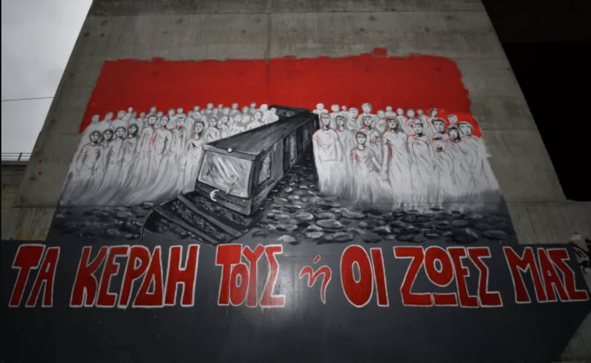 Το Σάββατο 24 Φεβρουαρίου δημιουργήθηκε από μέλη του Εργατικού Κέντρου Λάρισας σε συνεργασία με το Εικαστικό Επιμελητήριο Ελλάδας μία τοιχογραφία μνήμης, που «απαιτεί» να μην ξεχαστεί ποτέ η τραγωδία των Τεμπών, για να τιμήσουν τη μνήμη των 57 ανθρώπων που έχασαν τη ζωή τους.