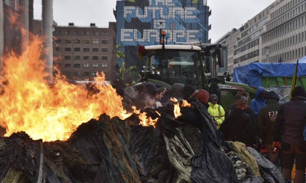 Πεδίο μάχης οι Βρυξέλλες: Εξαγριωμένοι αγρότες με τρακτέρ πέταξαν αυγά και έκαψαν λάστιχα