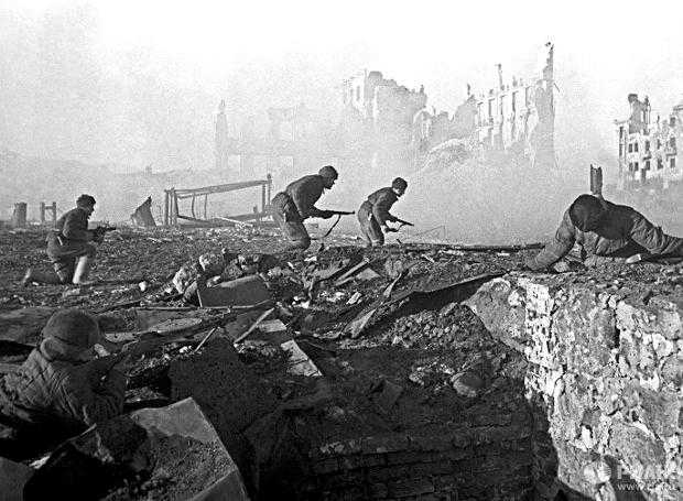 Βομβαρδισμός του Στάλινγκραντ, Αύγ. 1942Η Μάχη του Στάλινγκραντ άρχισε στις 23 Αυγούστου 1942 με καταιγιστικό βομβαρδισμό από την «Λουφτβάφε». Μέσα σε λίγα εικοσιτετράωρα το 80% της κτιριακής υποδομής της πόλης καταστράφηκε, λαμβανομένης υπ’ όψη και της ανεπαρκούς αντιεροπορικής άμυνας, στην οποία υπηρετούσαν νεαρές εθελόντριες. Τις πρώτες μέρες του Σεπτεμβρίου τα χερσαία τμήματα της «Βέρμαχτ» είχαν σχεδόν περικυκλώσει την πόλη. Η μόνη γραμμή ανεφοδιασμού που απέμενε ήταν από τη θαλάσσια οδό του Βόλγα.
