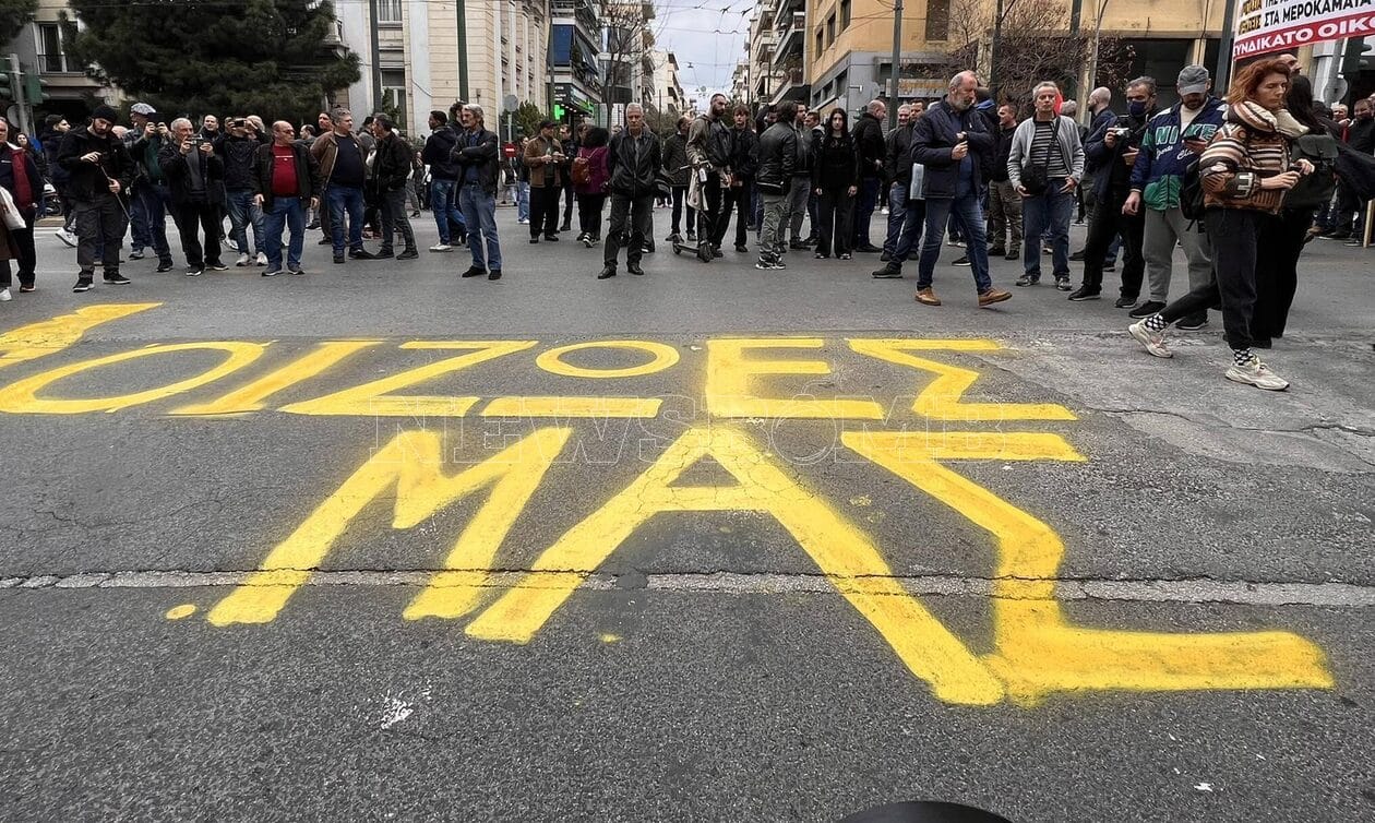 Τέμπη, ακριβώς έναν χρόνο μετά την τραγωδία με 57 νεκρούς… Αθήνα, 28 Φεβρουαρίου 2024… Νέοι άνθρωποι από κάποιο εργατικό μπλοκ που συμμετέχουν στην απεργία με σπρέι γράφουν σε κάποιον τοίχο «Οι ζωές μας»…