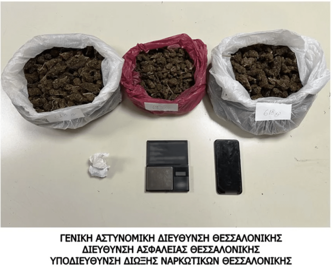 Συγκεκριμένα, σε έρευνα που έγινε στην οικία του συλληφθέντα στην περιοχή της Τούμπας, βρέθηκαν και κατασχέθηκαν ένα κιλό και 435 γραμμάρια ακατέργαστης κάνναβης, χωρισμένη σε τέσσερις αυτοσχέδιες συσκευασίες, ηλεκτρονική ζυγαριά ακριβείας και ένα κινητό τηλέφωνο που χρησιμοποιούσε για τις συνεννοήσεις του.