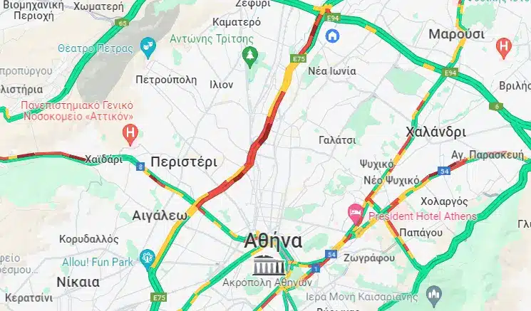 Στην Αττική οδό, καθυστερήσεις στο ρεύμα προς Αεροδρόμιο 15′-20′ από κόμβο Μεταμόρφωσης έως κόμβο Κηφισίας. Καθυστερήσεις 10′-15′ στην έξοδο για Λαμία στο ρεύμα προς Ελευσίνα.