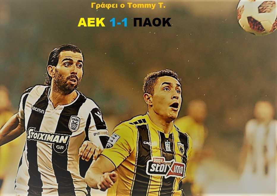 Η ΑΕΚ δεν κατάφερε να ξεκλειδώσει την άμυνα του ΠΑΟΚ και να πάρει την πολυπόθητη νίκη, παρότι ο αντίπαλος της αγωνιζόταν με 10 παίκτες από το 33ο λεπτό (αποβολή Ζαμπά με δεύτερη κίτρινη). Το αποτέλεσμα χαρακτηρίζεται δίκαιο και ίσως να αδικεί το ΠΑΟΚ, που παρέδωσε ρεσιτάλ αμυντικής λειτουργίας.