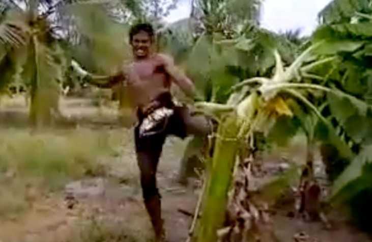 Το παλικάρι έχει τρελή δύναμη, αφού όπως θα δείτε καταφέρνει να σπάσει ένα μικρό δεντράκι, με τις κλωτσιές του! Βέβαια τι του έχει κάνει το καημένο το δεντράκι, ακόμα δεν καταλάβαμε, αλλά οκ, αυτός κάτι παραπάνω θα ξέρει…