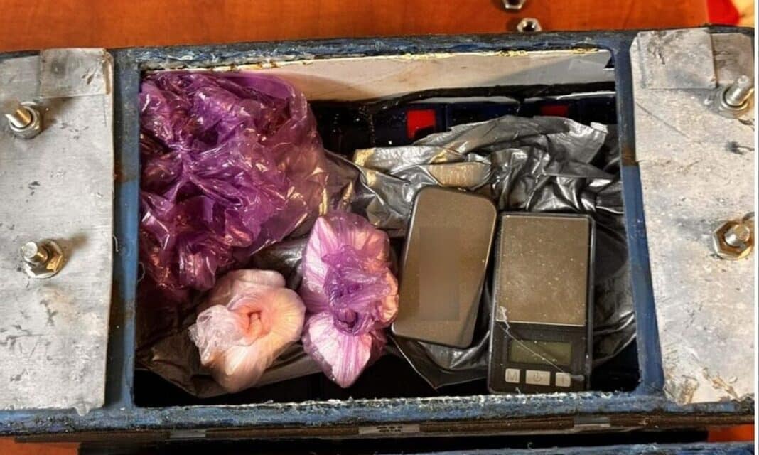Έτσι, μετά από έρευνα συνελήφθη 25χρονος ημεδαπός, καθώς στην οικία του σε περιοχή της Πυλαίας βρέθηκαν και κατασχέθηκαν 2 νάιλον συσκευασίες που περιείχαν κοκαΐνη συνολικού βάρους 59,3 γραμμαρίων, 2 ηλεκτρονικές ζυγαριές ακριβείας και 1 νάιλον σακούλα κενού περιεχομένου, που εντοπίστηκαν επιμελώς κρυμμένα στο εσωτερικό μπαταρίας φορτηγού που είχε διαμορφωθεί αναλόγως, για να παραμείνει πλήρως λειτουργική.