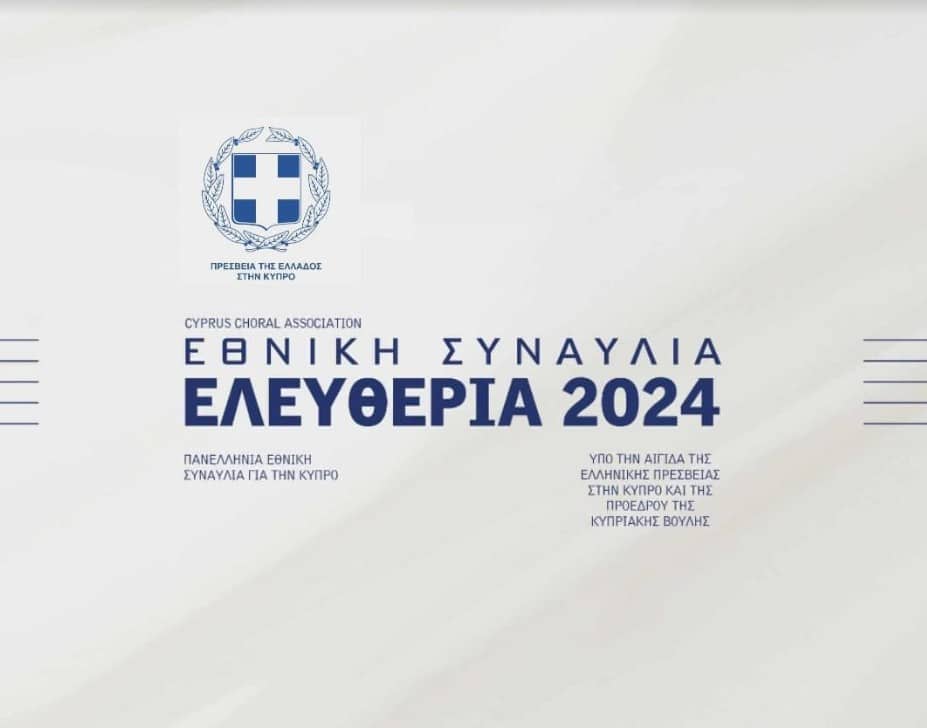Πρόκειται για την μεγαλειώδη εθνική συναυλία “ΕΛΕΥΘΕΡΙΑ 2024” που θα πραγματοποιηθεί απόψε στις 8.30μμ στο Κλειστό Στάδιο «Τάσσος Παπαδόπουλος – Ελευθερία» στη Λευκωσία σε διοργάνωση του Παγκύπριου Συνδέσμου Χορωδιών. Υπό την αιγίδα της Ελληνικής Πρεσβείας στην Κύπρο και της Προέδρου της Κυπριακής Βουλής.