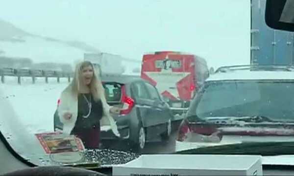 Ε, λοιπόν σε ένα αντίστοιχο μποτιλιάρισμα έτυχε και η Wendy Gossett η οποία λόγω μιας χιονοθύελλας έμεινε «κολλημένη» στον αυτοκινητόδρομο για περίπου 5 ώρες. Μαζί της στο αυτοκίνητο ήταν τα δυο της παιδιά, η Jordan και o Nathan.