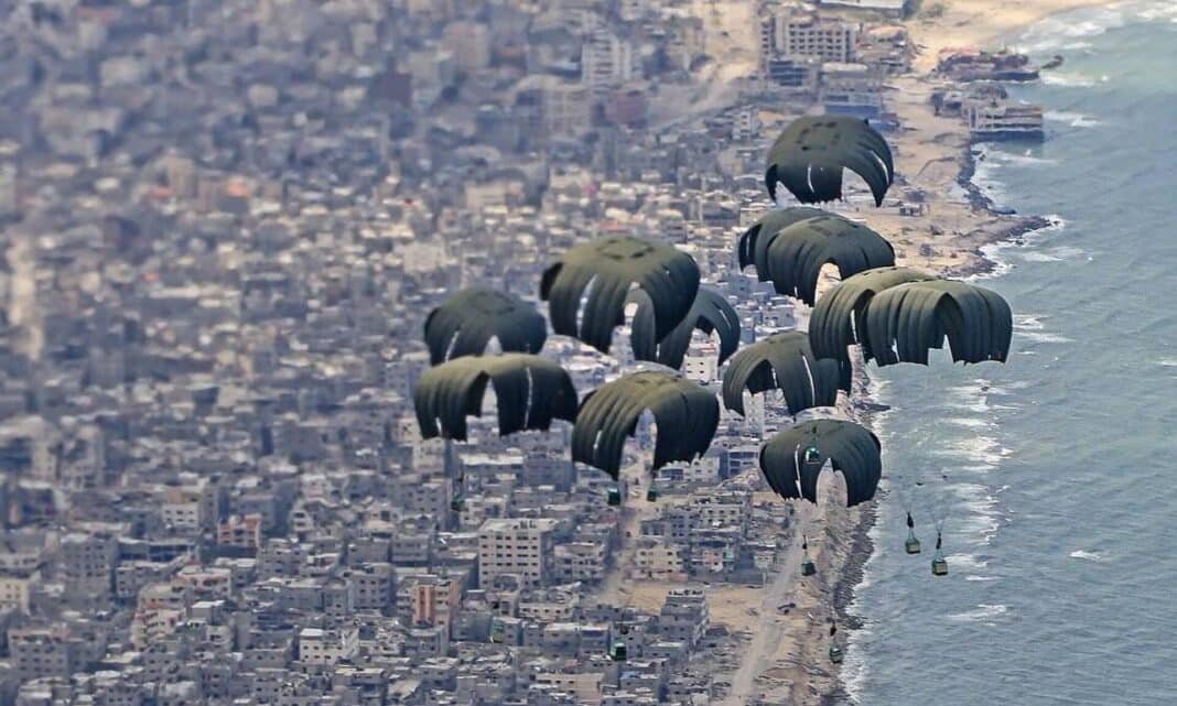 Το υπουργείο Άμυνας της Βρετανίας ανακοίνωσε τα ξημερώματα της Τρίτης ότι η RAF, η βρετανική πολεμική αεροπορία, προχώρησε τη Δευτέρα —για πρώτη φορά— στη ρίψη με αλεξίπτωτα συνολικά 10 μετρικών τόνων τροφίμων προοριζόμενων για τους άμαχους στη Λωρίδα της Γάζας.