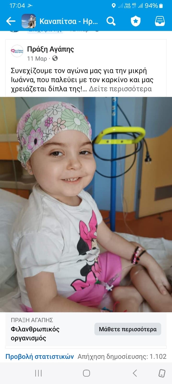Η μικρή Ιωάννα είναι ένα τετράχρονο κοριτσάκι που δίνει μάχη με τον καρκίνο, αφού πριν από μερικούς μήνες διαγνώστηκε με οξεία λεμφοβλαστική λευχαιμία, έναν επιθετικό καρκίνο του αίματος. Το παρόν διάστημα, η μικρή Ιωάννα νοσηλεύεται στην παιδο-ογκολογική πτέρυγα δημοσίου Νοσοκομείου, όπου υποβάλλεται στον τρίτο κύκλο χημειοθεραπειών. Η μητέρα της μικρής Ιωάννας έχει εγκαταλείψει προσωρινά την εργασία της, ώστε να βρίσκεται δίπλα στο κοριτσάκι της, που δίνει τη μεγαλύτερη μάχη της ζωής της. Επιπλέον, η νεαρή μητέρα θα πρέπει να βρει άμεσα νέα κατοικία, που θα είναι κατάλληλη να φιλοξενήσει τη μικρή Ιωάννα όταν εκείνη πάρει εξιτήριο, αφού η οικογένεια διαμένει προσωρινά σε ένα μικρό και ανήλιο σπίτι, το οποίο έχει κριθεί ως ακατάλληλο από τους αρμόδιους κοινωνικούς φορείς.