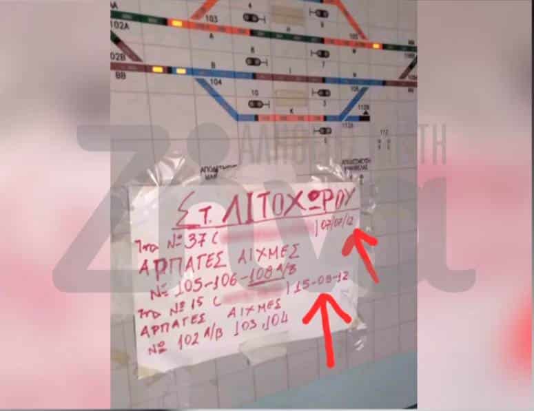 «Οι σταθμοί που είναι εντός της τηλεδιοίκησης που δεν έχουν κανέναν έλεγχο των αιχμών είναι οι εξής: Παλαιοφαρσάλου τελείως σβηστός, Σταθμός Ορφανά, όλα τα κυκλώματα σε άνοδο-κάθοδο ερυθρά. Σταθμός Δοξαρά όλα ερυθρά με αρπάγες. Σταθμός Κραννώνα όλα ερυθρά. Σταθμός Μεζούρλου όλα ερυθρά και επειδή γίνονται χειρισμοί στις αιχμές επιβάλλεται να έχουμε έλεγχο. Σταθμός Λάρισας όλα ερυθρά και εδώ επιβάλλεται να έχουμε έλεγχο διότι γίνονται συνεχώς χειρισμοί από τους κλειδούχους και μπορούμε αν είχαμε έλεγχο να διορθώσουμε τυχόν λάθος τους. Στις σήραγγες των Τεμπών και του Πλαταμώνα (Νέοι Πόροι) όλα τα κυκλώματα ανόδου-καθόδου. Δεν έχουμε κανένα έλεγχο ούτε καμερών ασφαλείας ούτε πυρασφάλειας-πυρανίχνευσης σε περίπτωση πυρκαγιάς δεν μπορούμε να αποκλείσουμε την είσοδο των αμαξοστοιχιών σε αυτές (στις σήραγγες). Τα κυκλώματα των σηράγγων που είναι ερυθρά επιβάλλεται να καθαριστούν για την ασφαλή κυκλοφορία των αμαξοστοιχιών σε αυτές. Η διαδοχή των αμαξοστοιχιών γίνεται σε πολλές περιπτώσεις με τη χρήση κινητών τηλεφώνων».