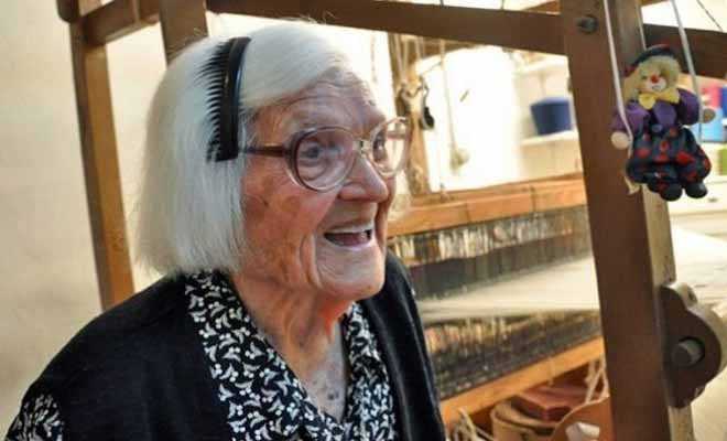 Μια γυναίκα περιποιημένη, εξαιρετικά καλά στην υγεία της, που τρέχει (στην κυριολεξία, κι ας χρησιμοποιεί βοήθημα) για να φτάσει στον αργαλειό της, που σκαρφαλώνει (και πάλι στην κυριολεξία) για να κάτσει επάνω του και που όλα αυτά τα κάνει για πάνω από 100 χρόνια.