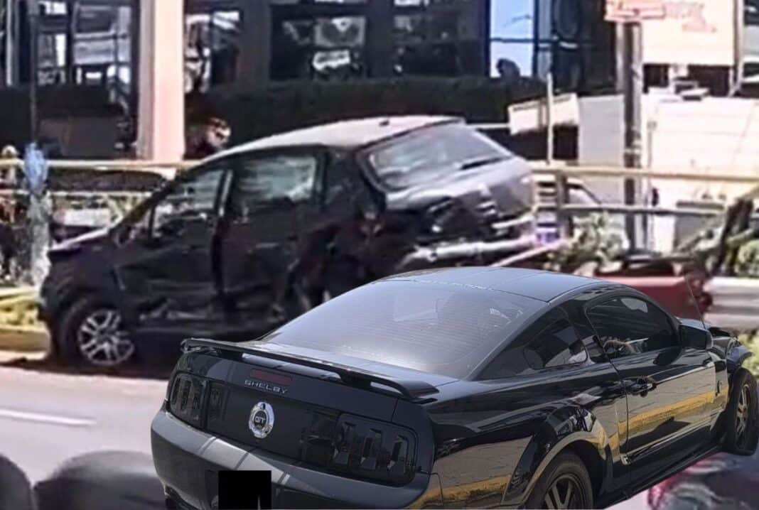 Υπό αδιευκρίνιστες μέχρι στιγμής συνθήκες ο οδηγός του μαύρου Mustang έχασε τον έλεγχο με αποτέλεσμα να καρφωθεί σε προπορευόμενο όχημα στο οποίο επέβαινε μια οικογένεια με μικρό παιδί και κατόπιν να καρφωθεί στις μπάρες της Λεωφόρου Συγγρού, στην κάθοδο προς τον Πειραιά.