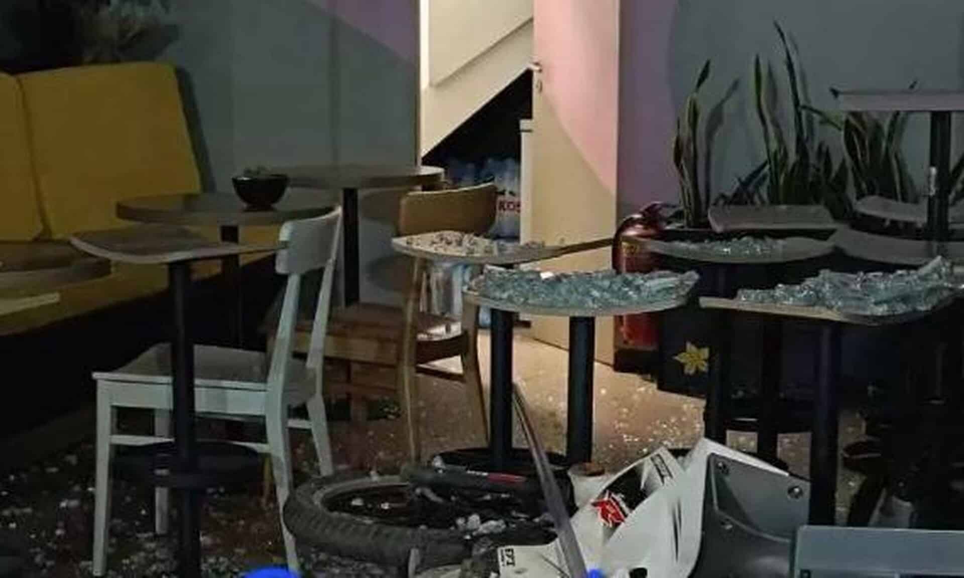 Ο νεαρός ήθελε να βάλει μέσα στην καφετέρια τη μηχανή που έκανε τις διανομές, όταν κάτω από αδιευκρίνιστες συνθήκες, έχασε τον έλεγχο και πέρασε μέσα από την τζαμαρία.