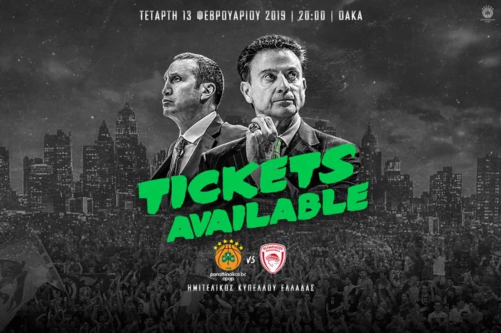 “Η ΚΑΕ Παναθηναϊκός ΟΠΑΠ ενημερώνει τους φιλάθλους της πως ξεκίνησε η διάθεση των εισιτηρίων για τον ημιτελικό του Κυπέλλου Ελλάδος με αντίπαλο τον Ολυμπιακό (13/2, 20.00) στο ΟΑΚΑ, καθώς και για όλες τις εντός έδρας αναμετρήσεις της κανονικής περιόδου της Euroleague.