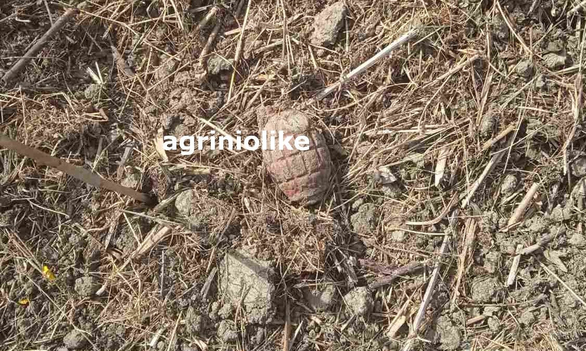 Μία αμυντική χειροβομβίδα Αγγλικού τύπου εντόπισε ένας αγρότης σε χωράφι στην στη Μακρυνεία Αγρινίου το πρωί της Τετάρτης 3 Απριλίου.