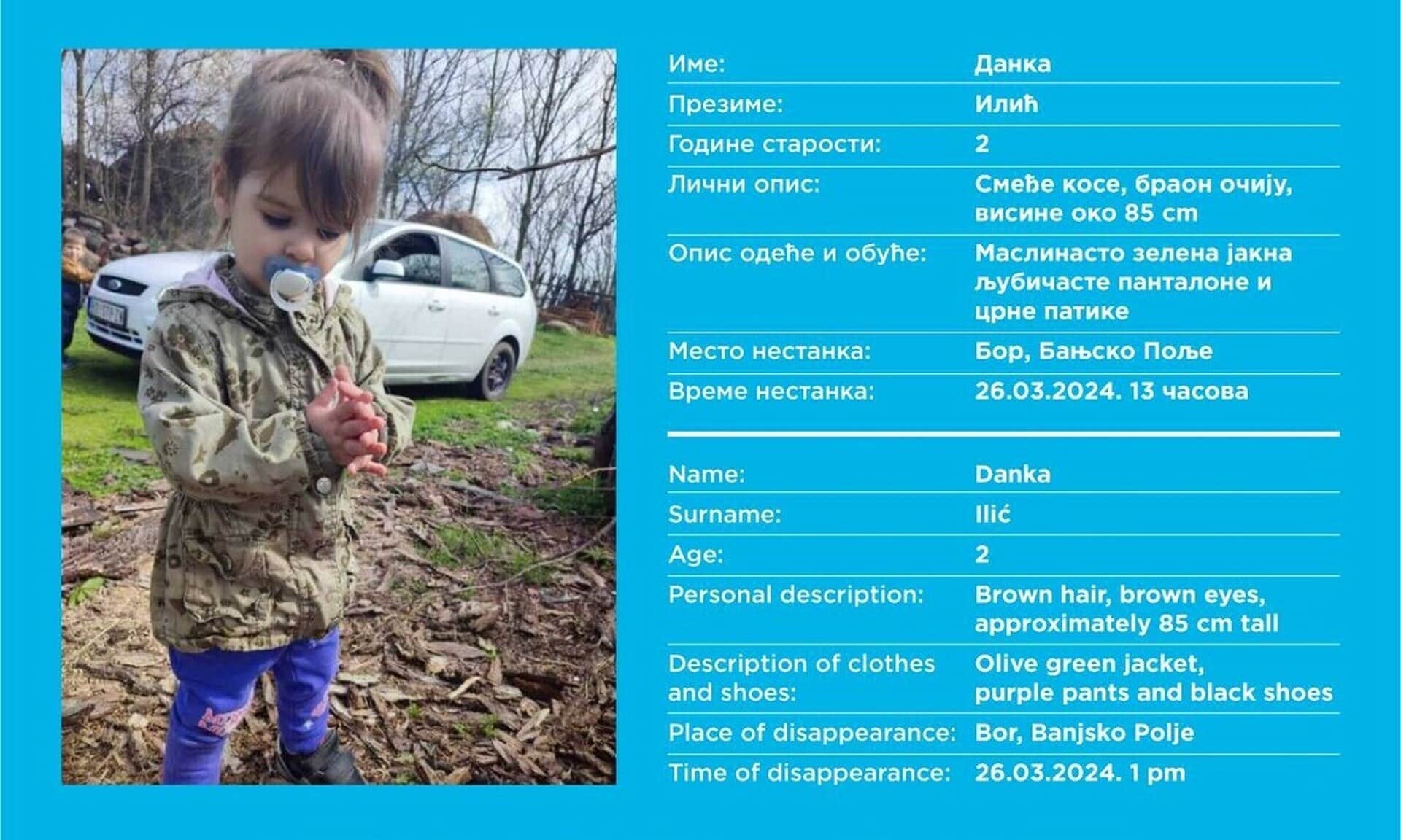 Τραγική κατάληξη είχε η υπόθεση εξαφάνισης της δίχρονης Ντάνκα Ίλιτς που συγκλόνισε την Σερβία.