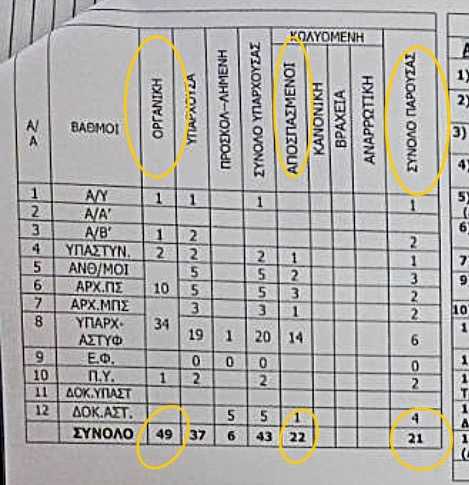 Από τα τμήματα που έχουν «παρούσα» δύναμη, υποπολλαπλάσια από την οργανική όπως επίσης αποδεικνύεται με τους καθημερινά συντασσόμενος πίνακες που ΕΙΝΑΙ ΕΙΣ ΓΝΩΣΗΝ του Γενικού Αστυνομικού Διευθυντή Αττικής!