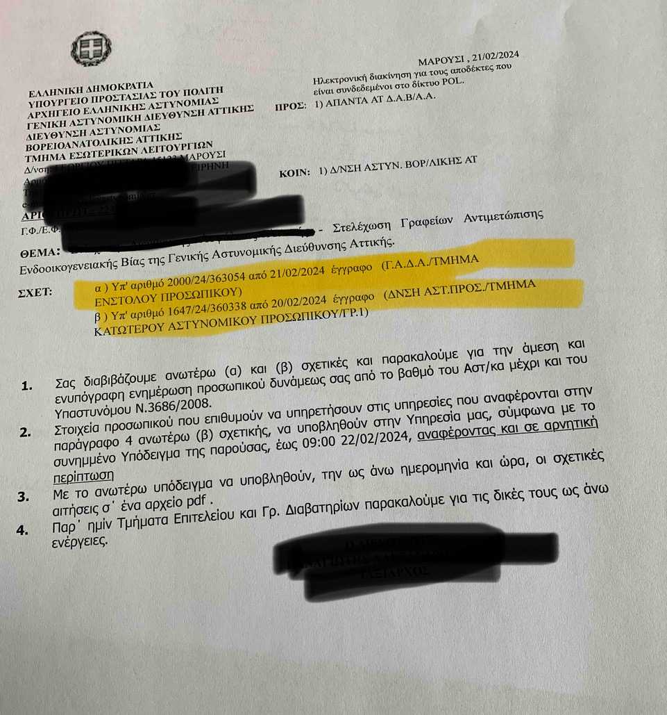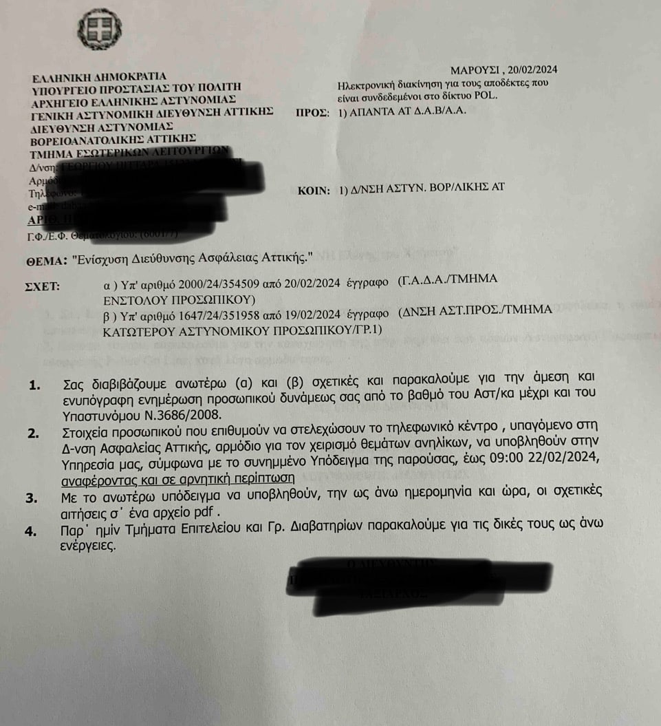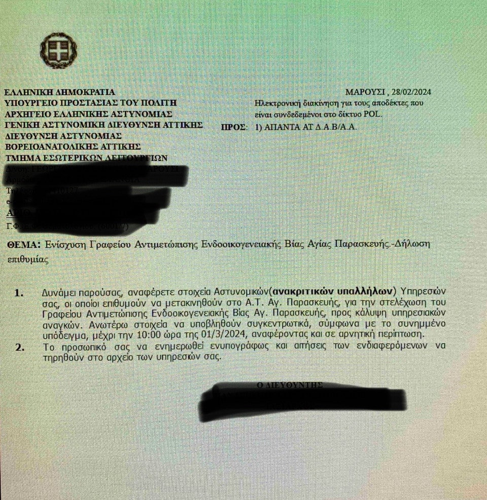 Από την υποστελέχωση των τμημάτων που αποδεικνύεται με «Απελπισμένες» διαταγές επάνδρωσης των γραφείων ενδοοικογενειακής βίας, που κάποια λόγω λειψανδρίας μαθαίνω ότι βάζουν λουκέτο το βράδυ!
