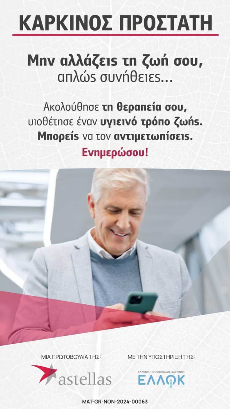 Νέα εκστρατεία ενημέρωσης και ευαισθητοποίησης σχετικά με τον καρκίνο του προστάτη, υλοποιεί η Astellas Ελλάδος με την υποστήριξη της Ελληνικής Ομοσπονδίας Καρκίνου (ΕΛΛΟΚ).