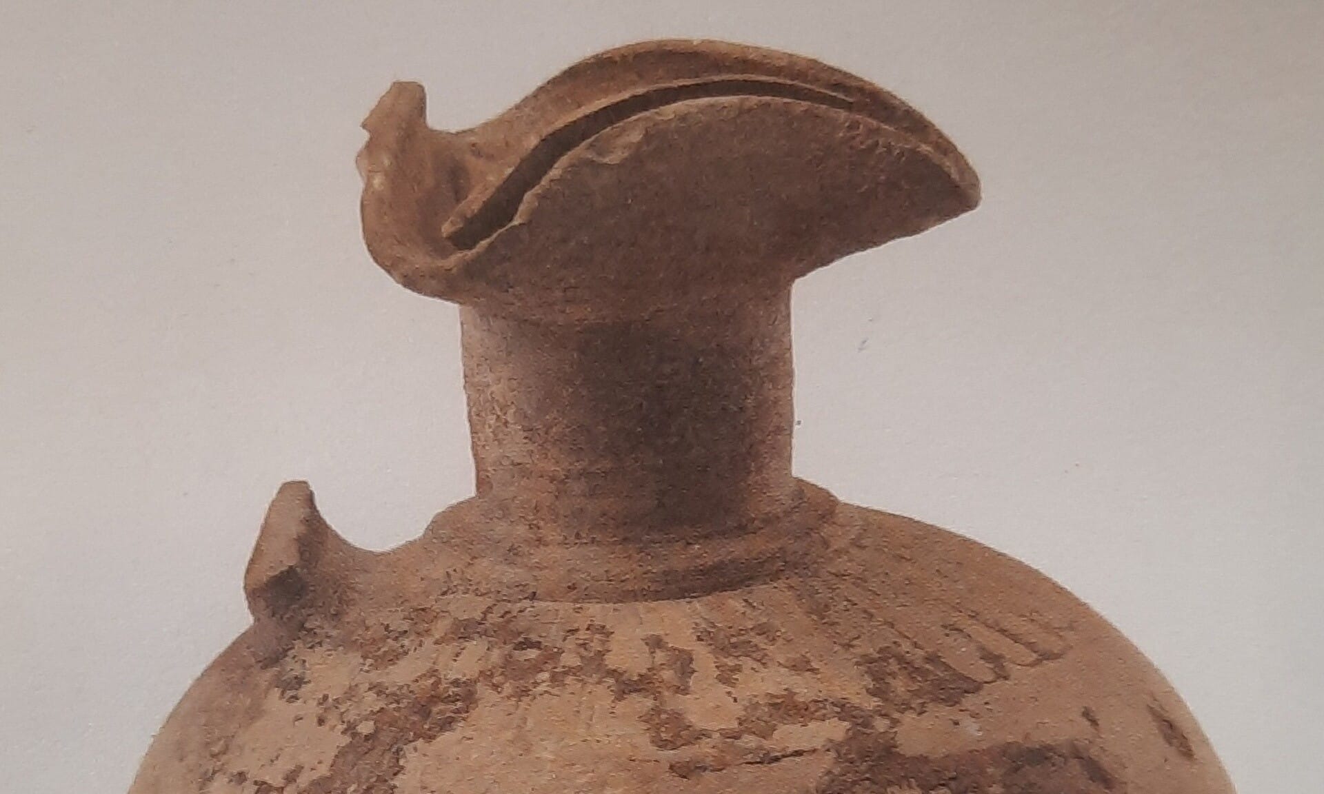 Πρόκειται για μία τριφυλλόσχημη οινοχόη με πώμα, που χρονολογείται στο 620- 600 π.Χ., η οποία σώζει ίχνη από γραπτή διακόσμηση περιμετρικά του λαιμού.