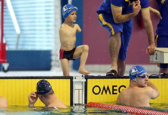 Ο 7χρονος επισκέπτεται το κολυμβητήριο 3 φορές την εβδομάδα και με τη βοήθεια των σωσιβίων του, αλλά έχοντας και έναν προπονητή στο πλευρό του, αθλείται κανονικά.