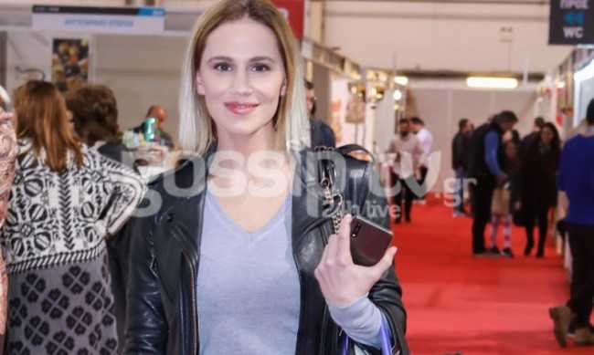 Ντυμένη casual με τζιν παντελόνι και δερμάτινο jacket έδειχνε να απολαμβάνει τις αγορές της στα περίπτερα της έκθεσης ενώ πόζαρε με χαμόγελο! Δείτε την
