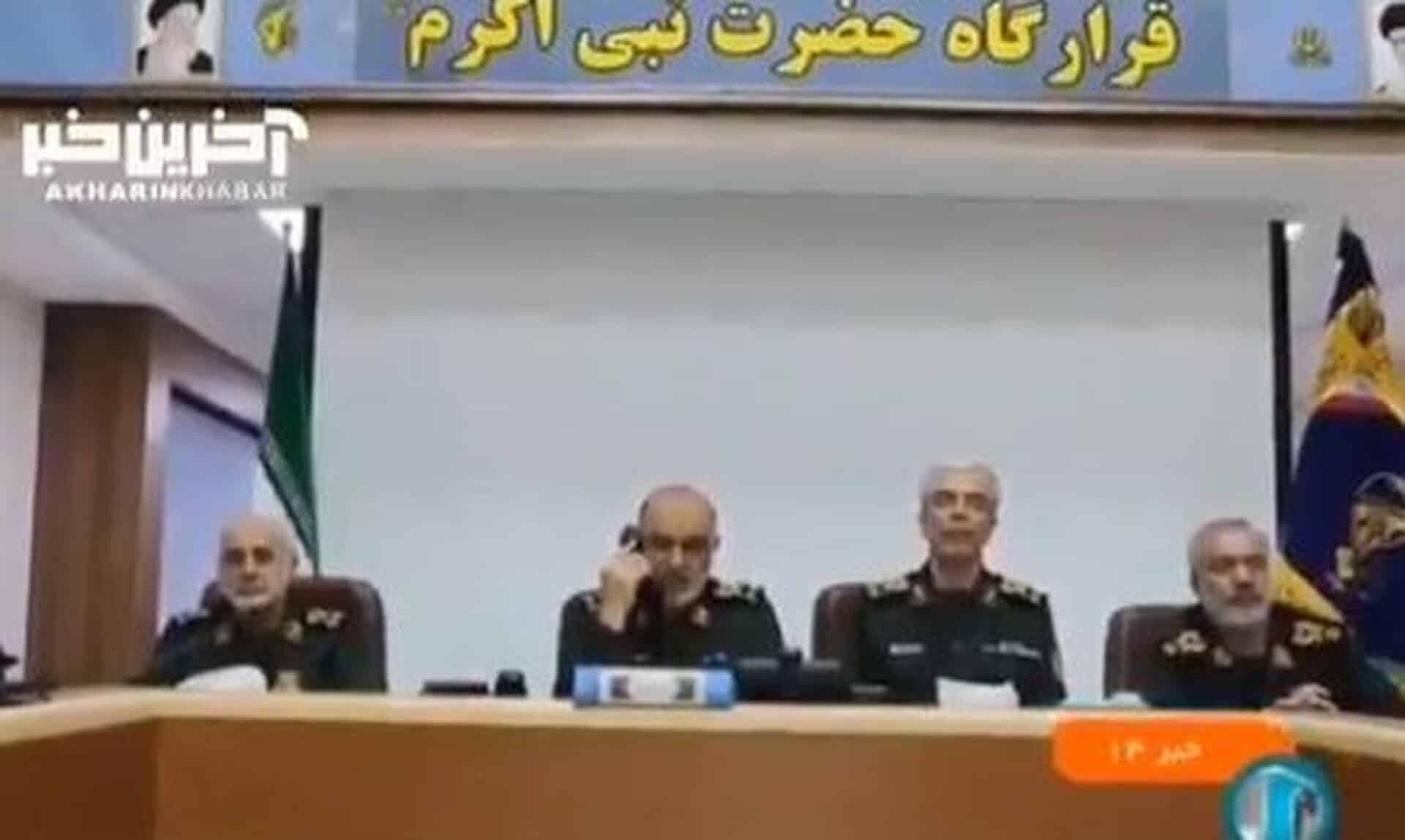 Η κρατική τηλεόραση του Ιράν έδειξε πλάνα από καταφύγιο στην Τεχεράνη που φέρεται να εμφανίζεται ο διοικητής του IRGC Χοσεΐν Σαλαμί να δίνει εντολή για την εκτόξευση βαλλιστικών πυραύλων στο Ισραήλ.