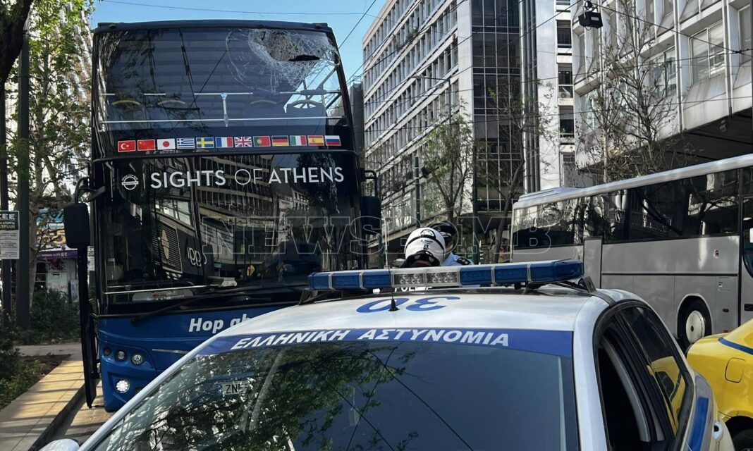 Η δοκός έσπασε το τζάμι του οχήματος και εισήλθε μέσα σε αυτό, με αποτέλεσμα τον τραυματισμό των τουριστών.