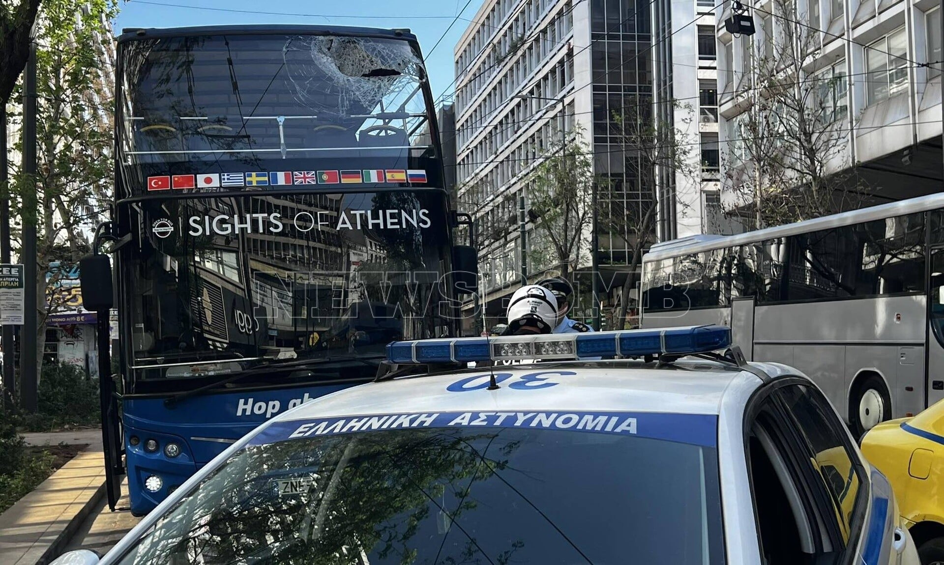Τέσσερις τουρίστες τραυματίστηκαν ελαφρά, όταν η δοκός και το καλώδιο ενός προπορευόμενου τρόλεϊ, κατέληξε στο μπροστινό του μέρος, στον δεύτερο όροφο του οχήματος.
