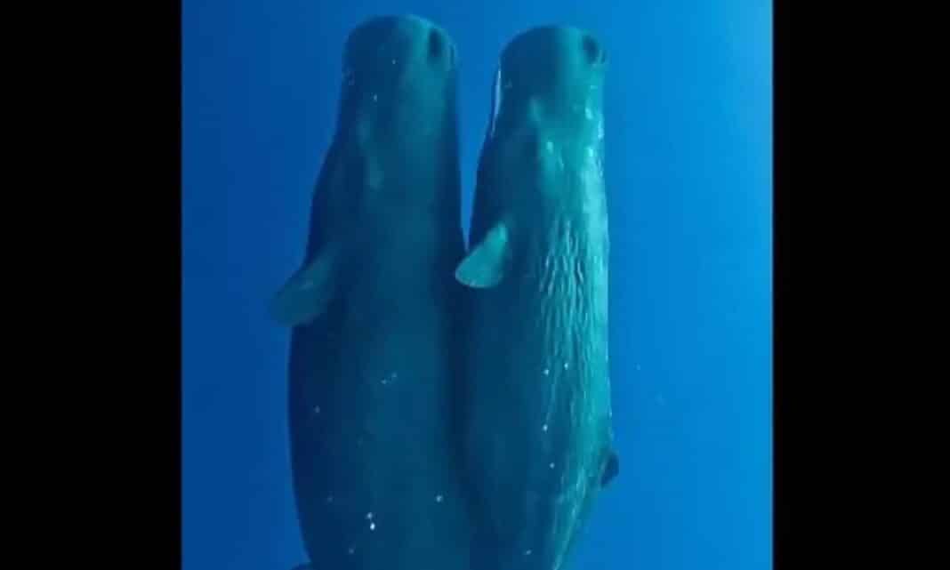 Μια οικογένεια από φάλαινες φυσητήρες επιπλέουν γαλήνια στα νερά του ωκεανού και παίρνουν τον… υπνάκο τους