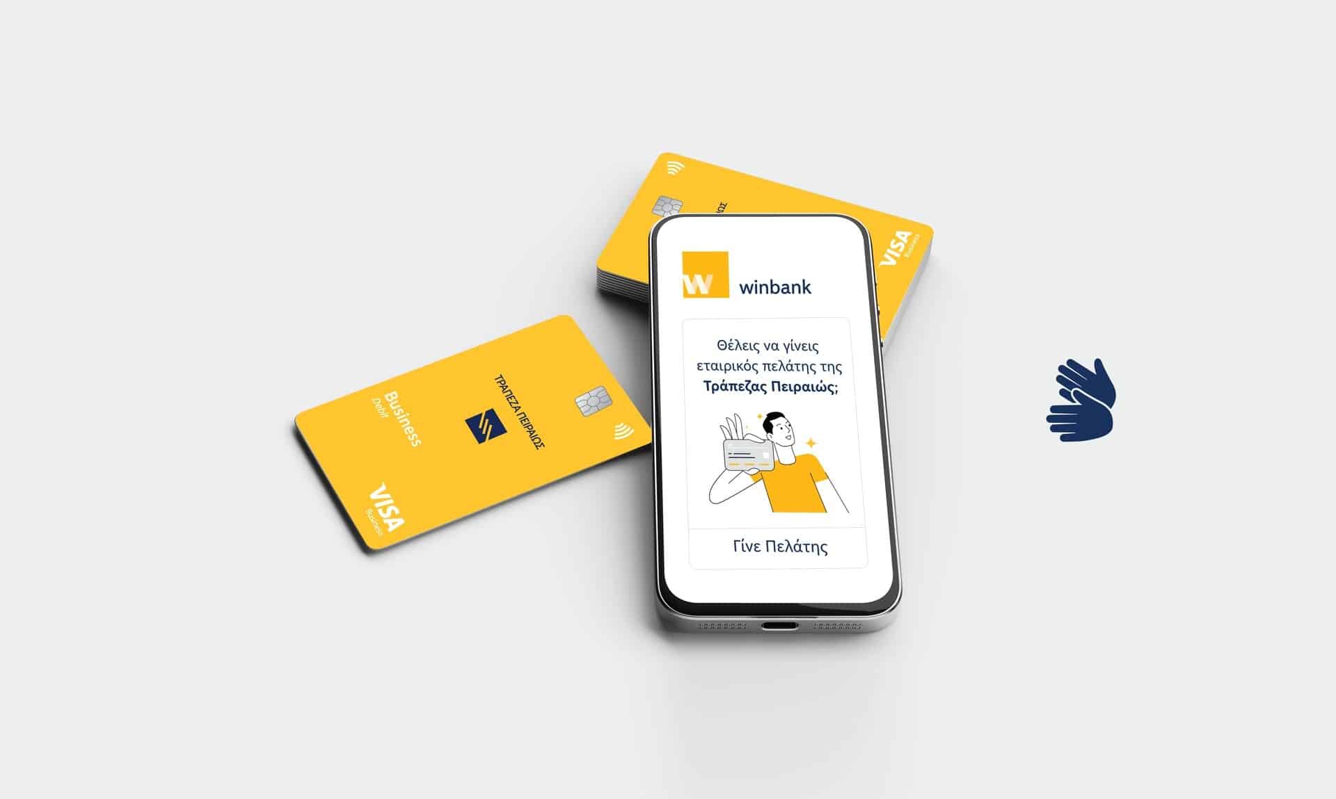 Mε τη χρήση της υπηρεσίας Digital Onboarding, ο νέος επαγγελματίας πελάτης αποκτά επαγγελματικό λογαριασμό όψεως (εμπορικό λογαριασμό), επαγγελματική χρεωστική κάρτα (business debit) και πρόσβαση στα κανάλια ψηφιακής εξυπηρέτησης της winbank.