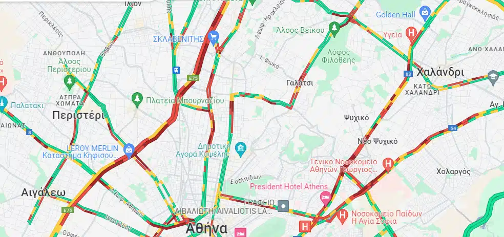 15΄-20΄από κόμβο Δημοκρατίας έως κόμβο Κηφισίας,