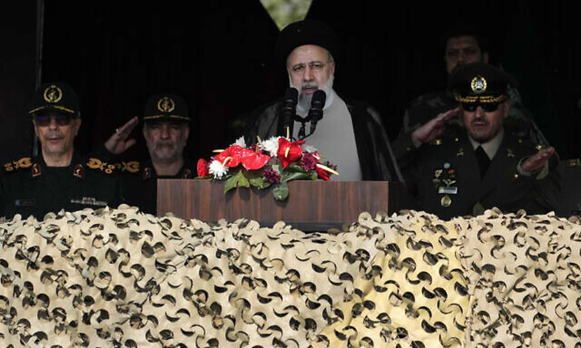 Ο Εμπραχίμ Ραΐσι στην ομιλία του σε μία ετήσια στρατιωτική παρέλαση, η οποία μεταφέρθηκε σε στρατώνα βόρεια της Τεχεράνης, από τον συνηθισμένο χώρο διεξαγωγής της, στα νότια προάστια της πόλης. Οι ιρανικές αρχές δεν αιτιολόγησαν τον λόγο της μεταφοράς, ενώ η δημόσια τηλεόραση δεν μεταδίδει ζωντανά την παρέλαση, όπως έκανε τα προηγούμενα χρόνια.