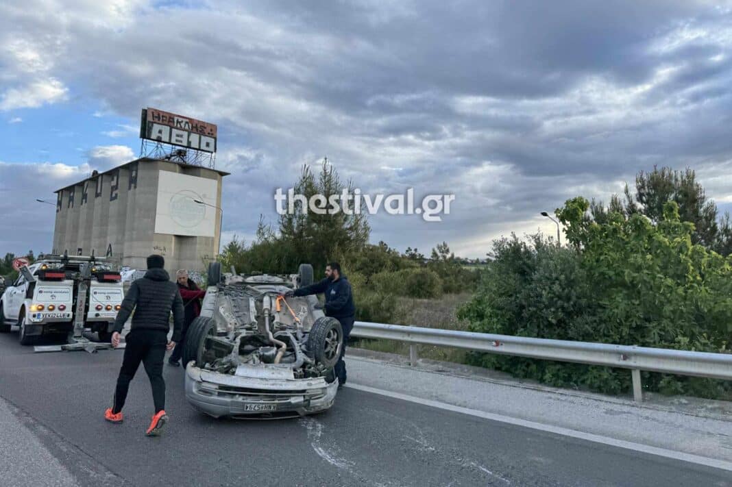 Θεσσαλονίκη: Αυτοκίνητο τούμπαρε στην Εθνική Οδό Θεσσαλονίκης – Νέων Μουδανιών