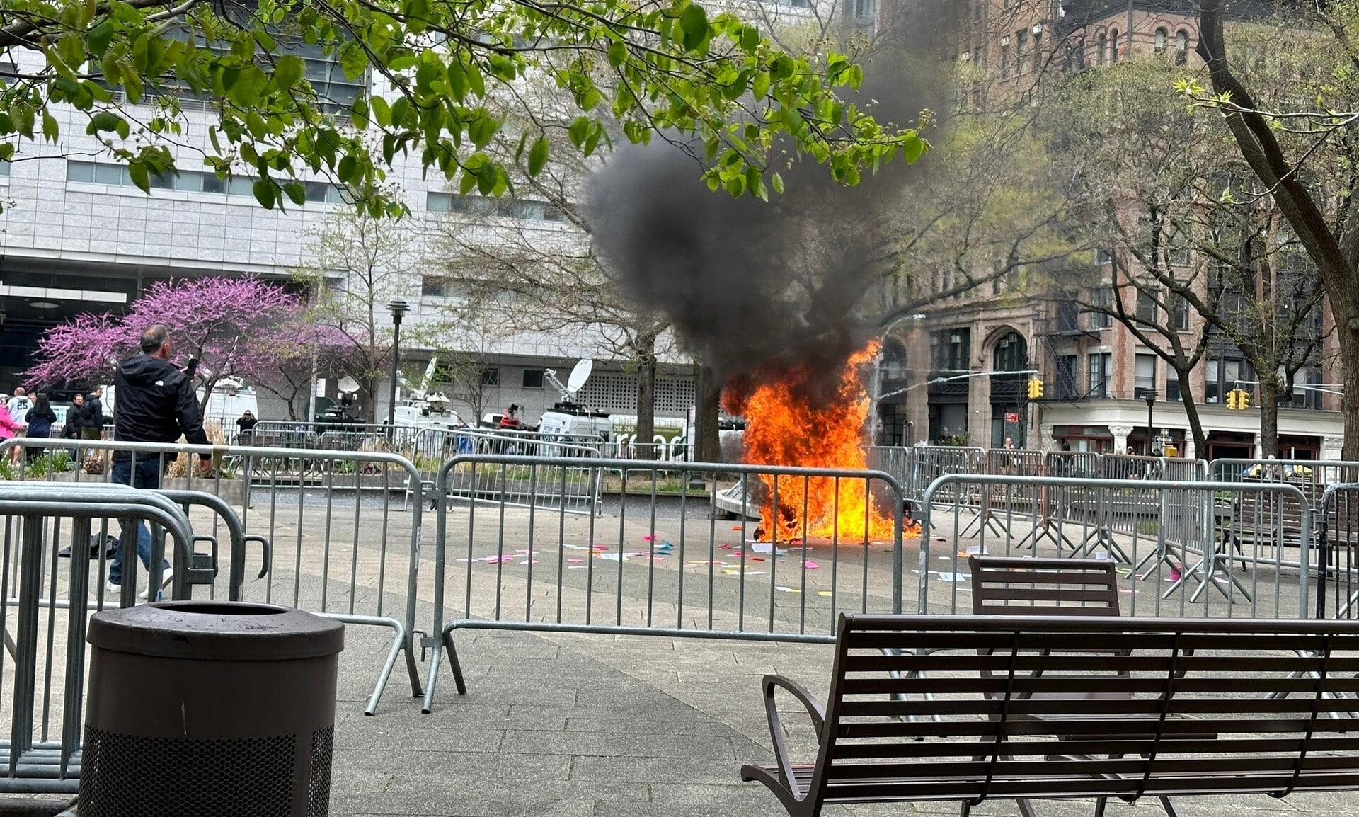 Σοκάρουν τα βίντεο που έχουν κάνει τον «γύρο» του διαδικτύου και δείχνουν άνθρωπο να έχει αυτοπυρποληθεί έξω από την αίθουσα όπου δικάζεται ο πρώην Πρόεδρος των Ηνωμένων Πολιτειών, στο Μανχάταν της Νέας Υόρκης.