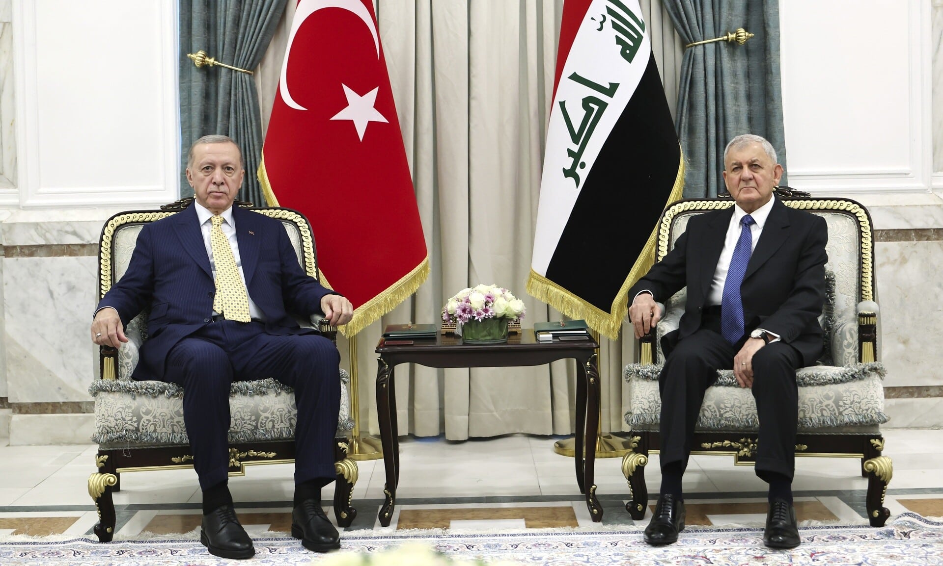 Ο πρόεδρος της Τουρκίας Ρετζέπ Ταγίπ Ερντογάν συναντήθηκε με τον ομόλογό του του Ιράκ, Αμπντούλ Λατίφ Ρασίντ, στη Βαγδάτη όπου πραγματοποιεί επίσημη επίσκεψη.